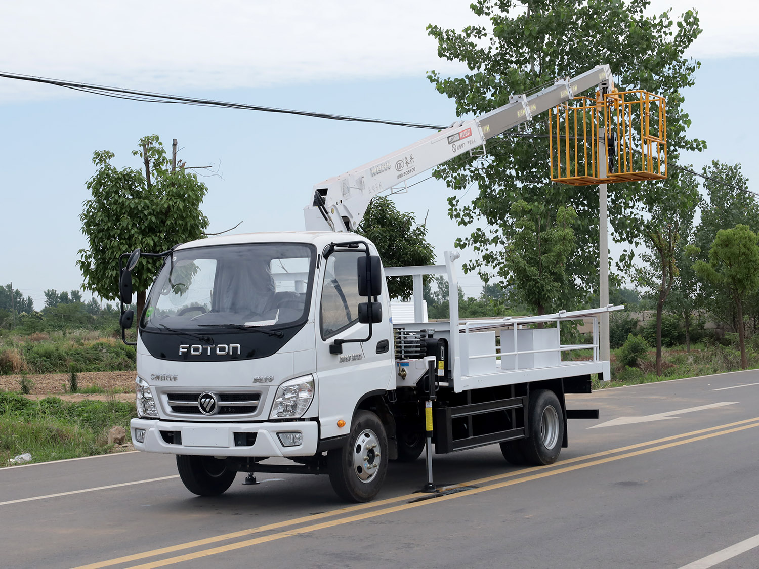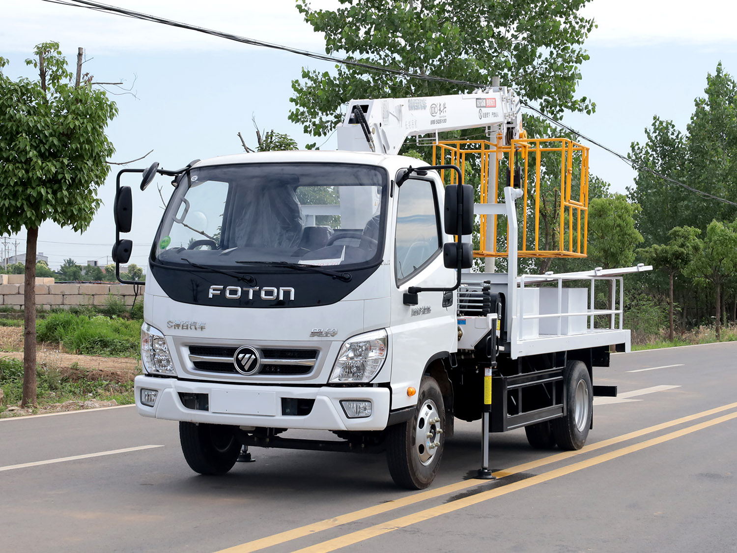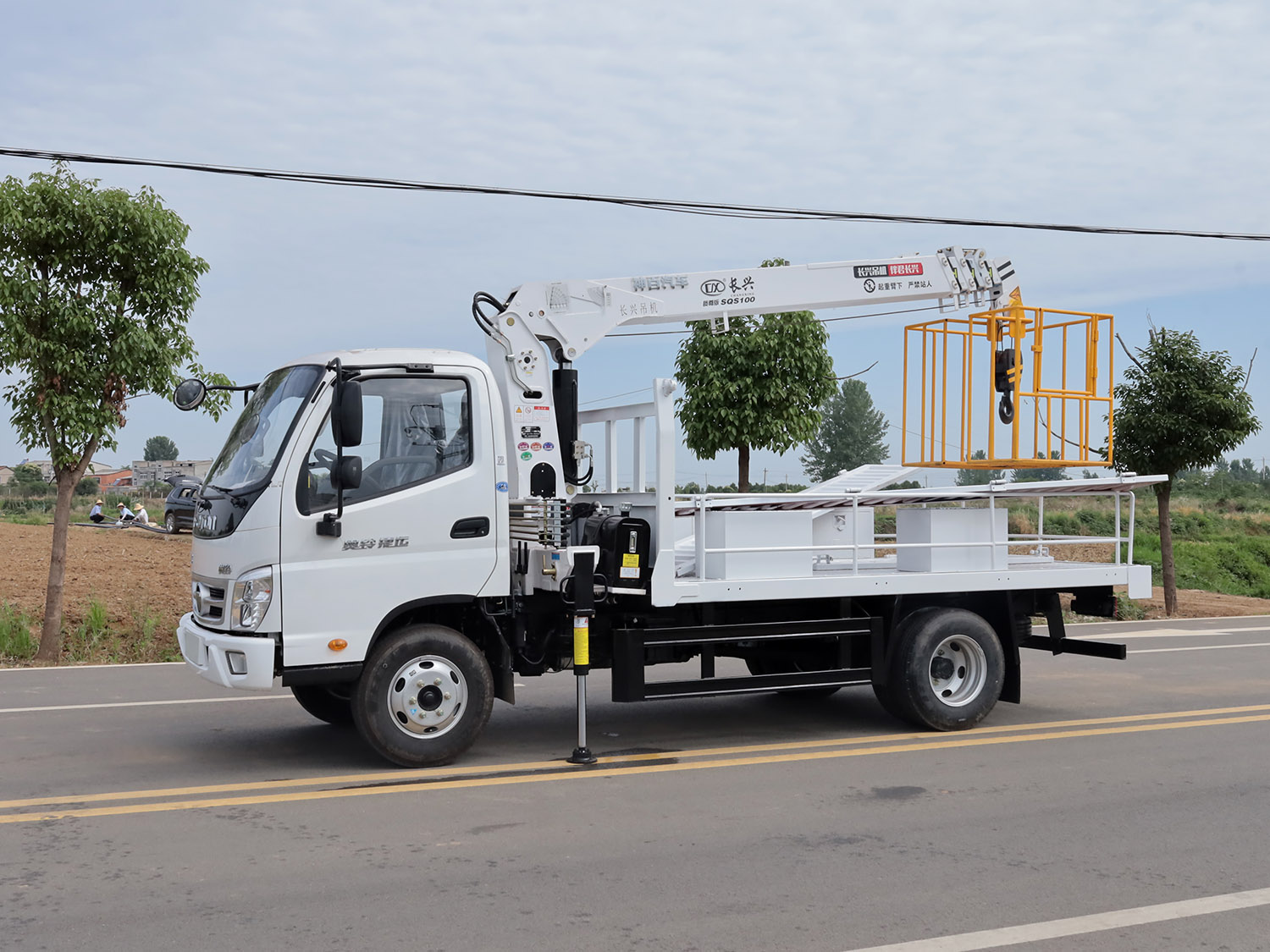 福田奧鈴捷運單排上裝長興4噸直臂式吊機(帶吊籃)