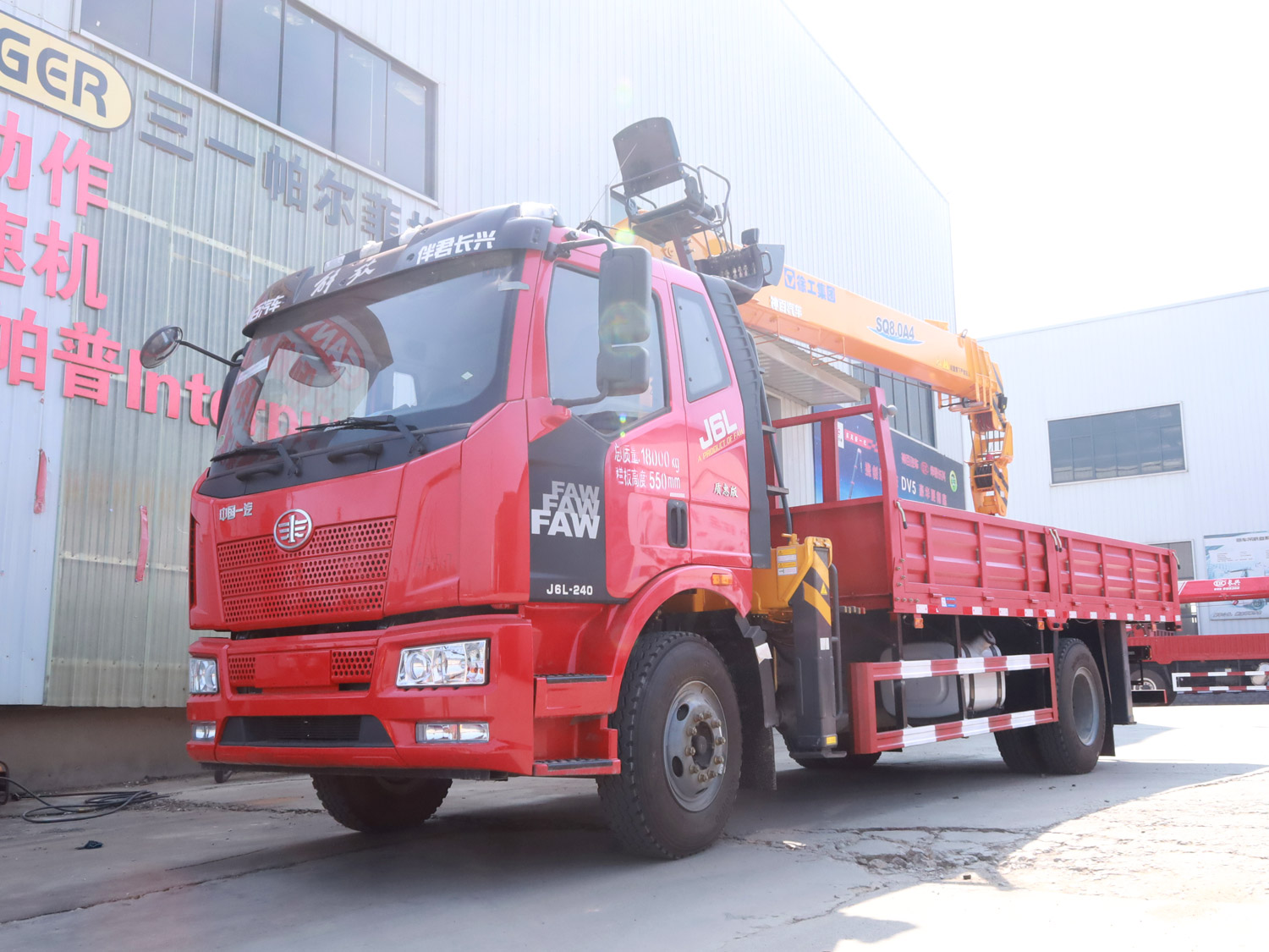 解放J6L排半駕駛室上裝徐工8噸直臂式吊機
