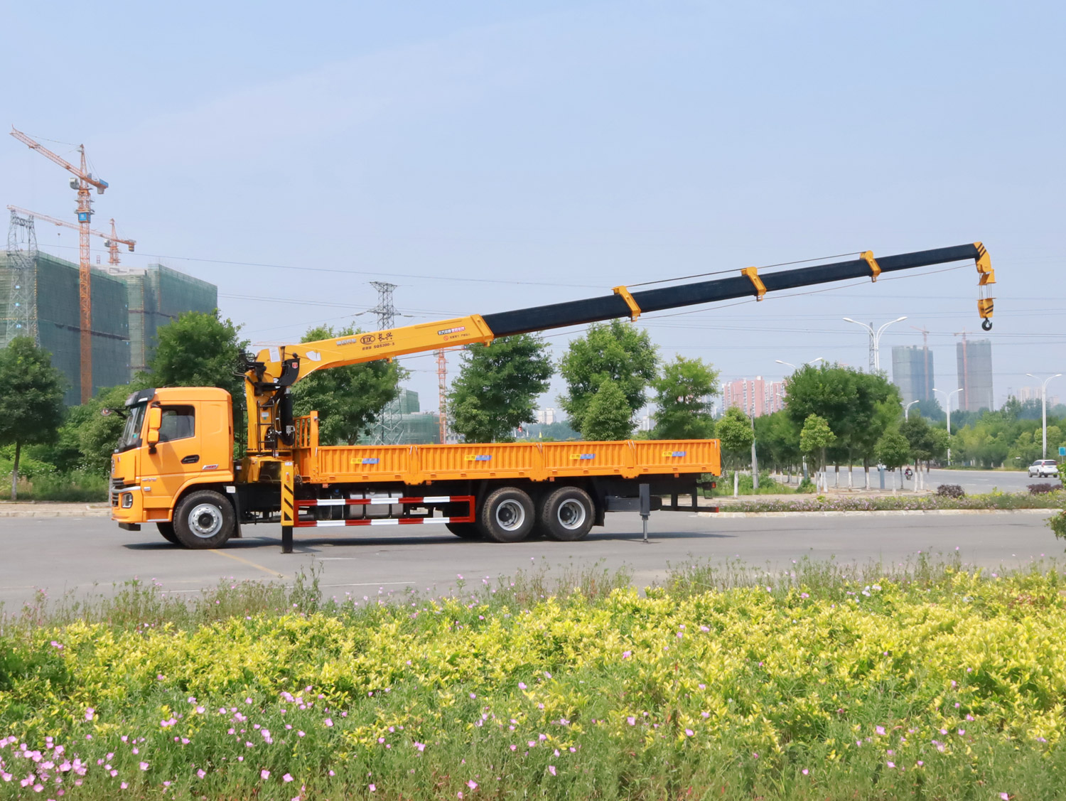 東風(fēng)華神F5駕駛室后雙橋上裝三一12噸直臂式吊機(jī)