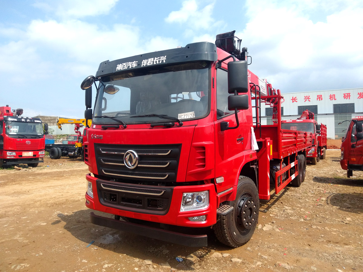 東風(fēng)華神F5駕駛室后雙橋上裝長興14噸直臂式吊機(jī)