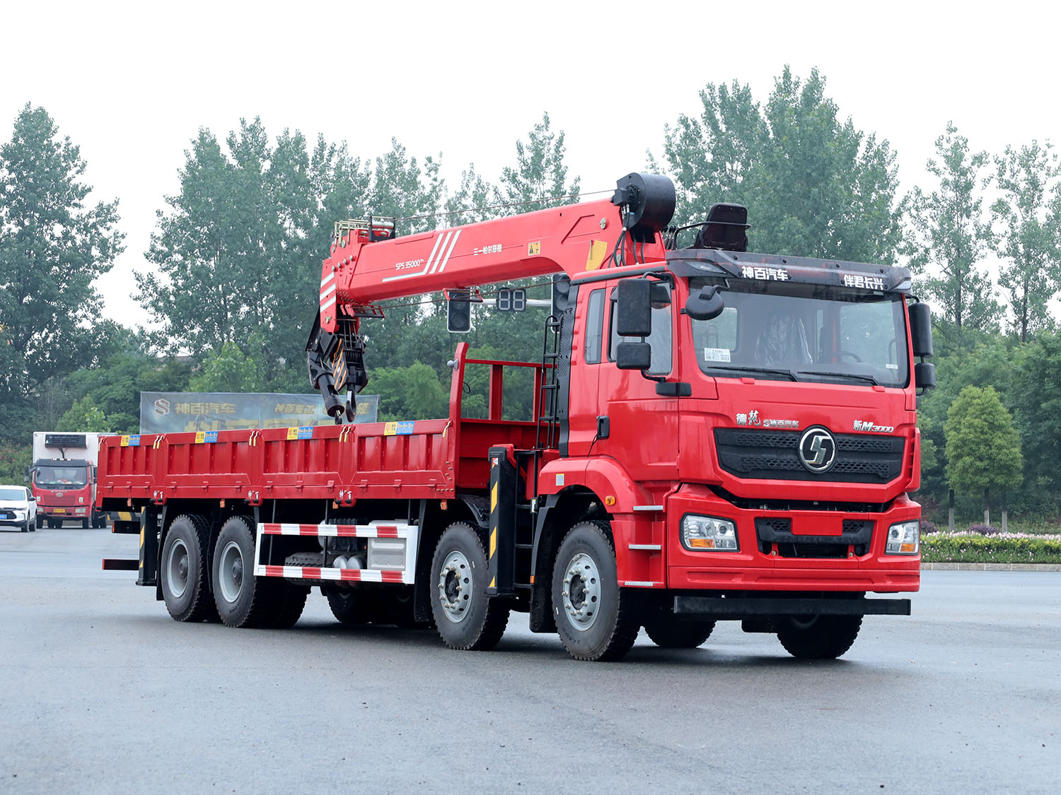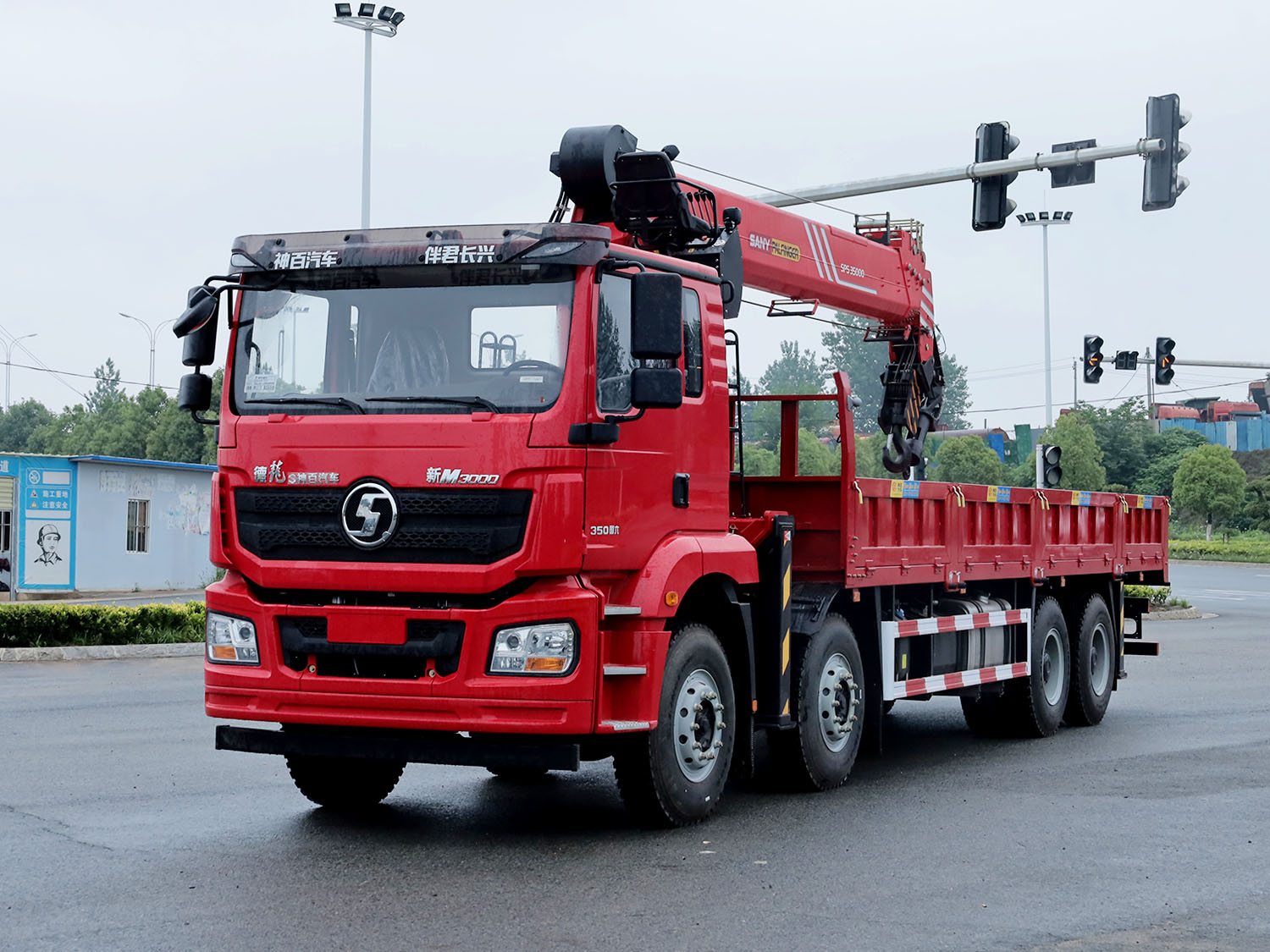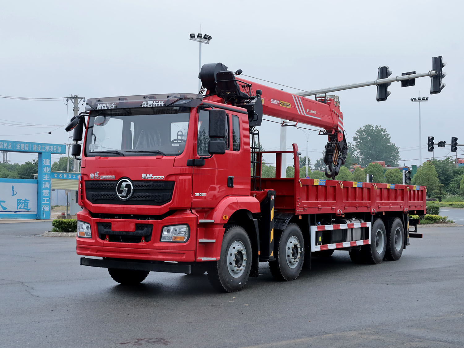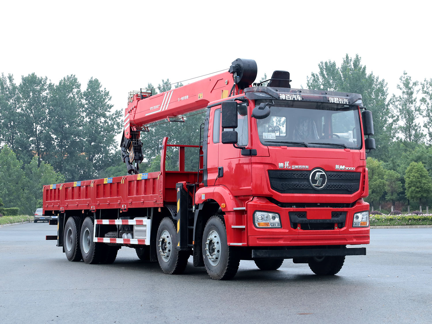 陜汽德龍新M3000駕駛室前四后八上裝三一14噸直臂式吊機(jī)