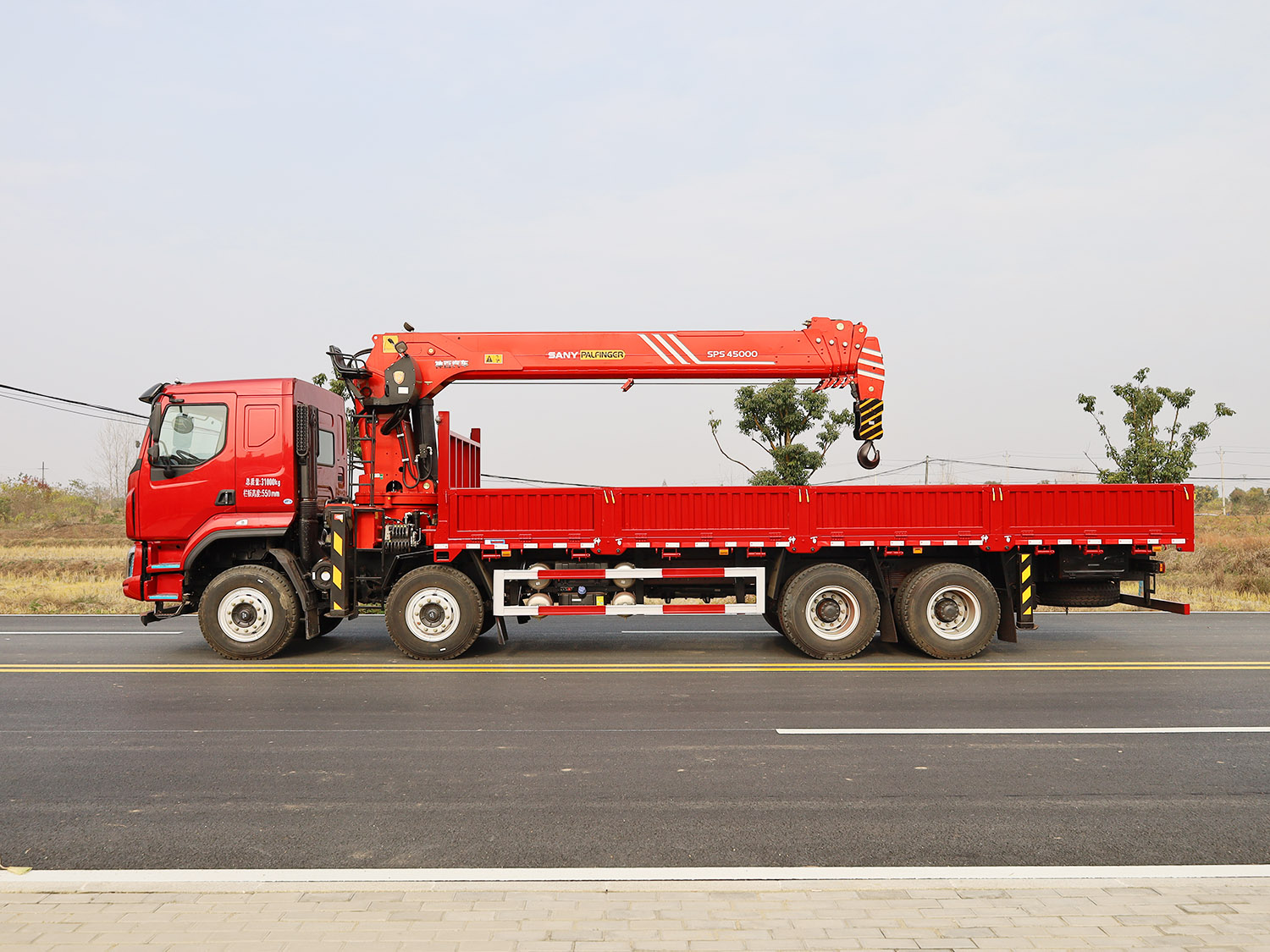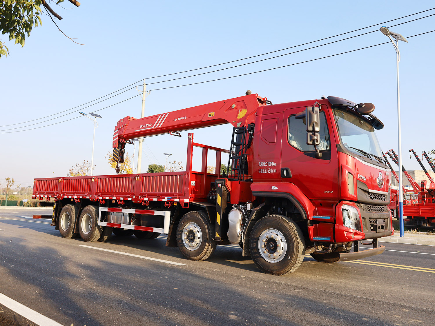 陜汽德龍新M3000駕駛室前四后八上裝三一16噸直臂式吊機