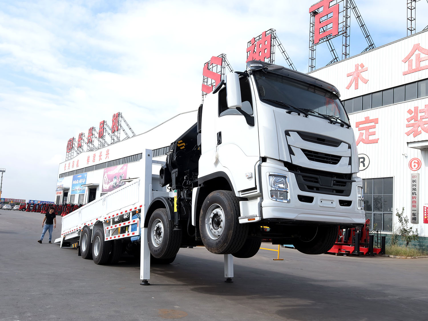 慶鈴五十鈴前四后八上裝長(zhǎng)興16噸折臂式吊機(jī)(重載舉升支腿,隱藏式爬梯)