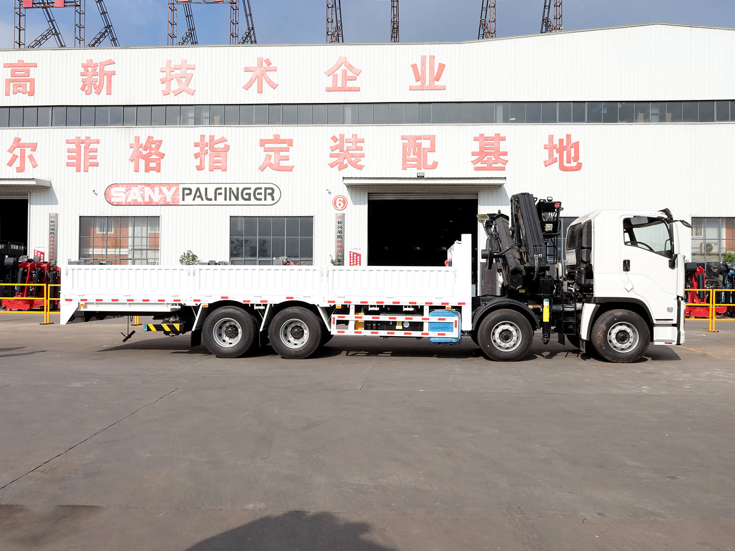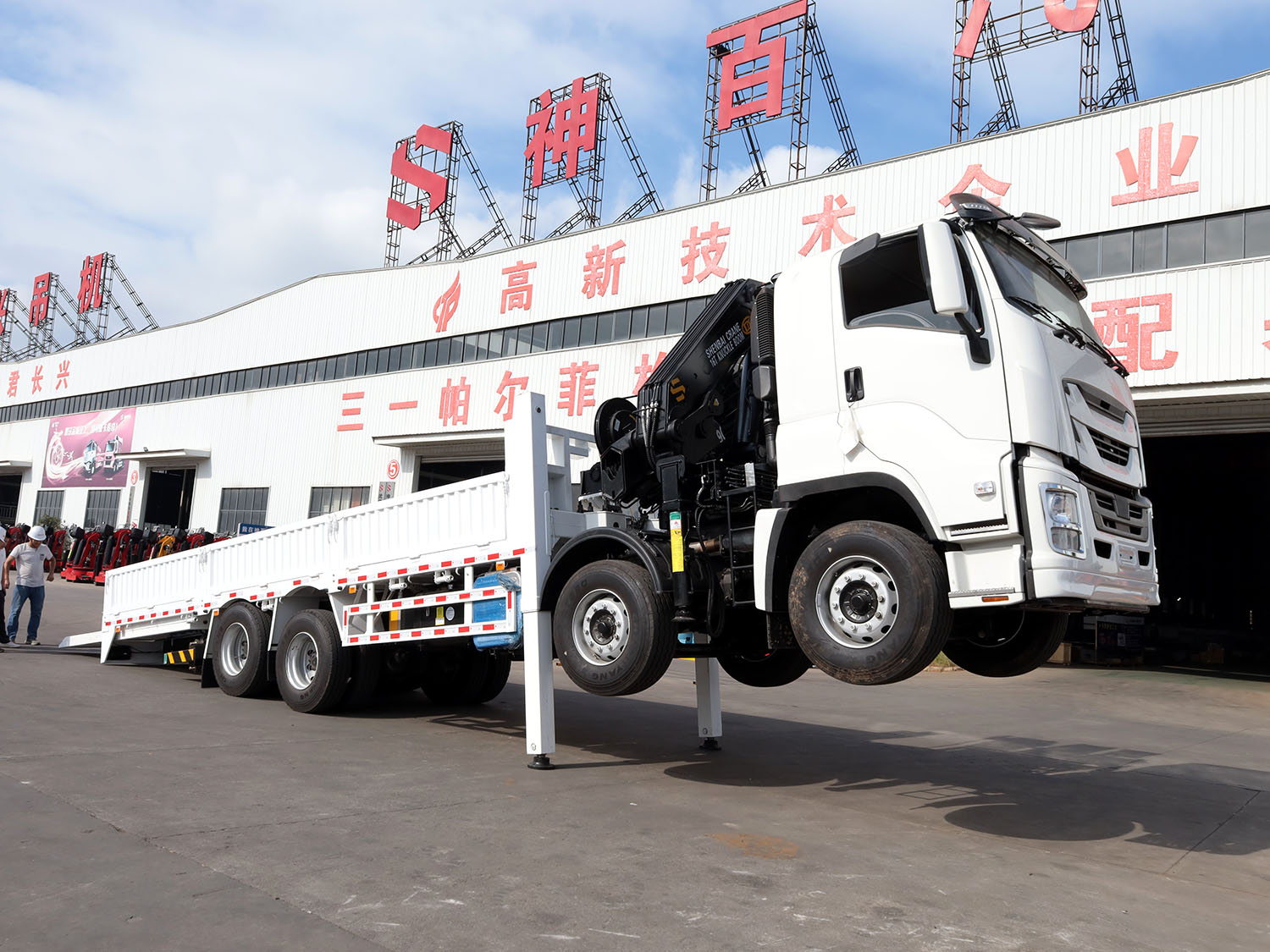 陜汽德龍新M3000駕駛室前四后八上裝長(zhǎng)興25噸折臂式吊機(jī)