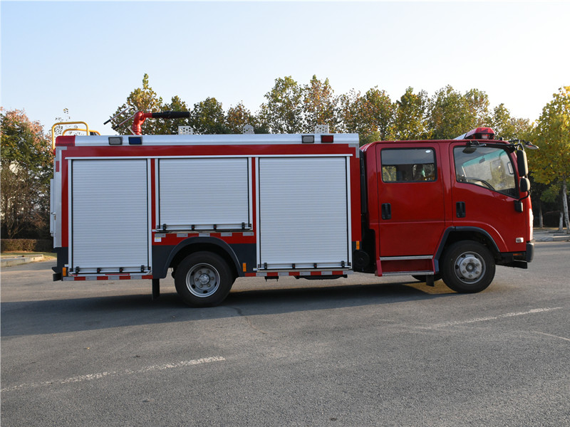 消防泵在箱體中間或者后置,泵房左右兩側4個出水口、器材箱左右后側均有新款易拉高強度鋁合金卷簾門。