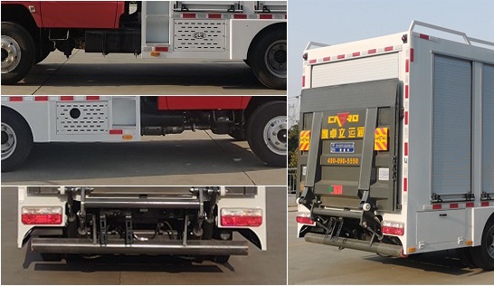 | 廂體頂部封閉,不可開啟.該車主要專用裝置:綁帶,用于運送機器人及相關專用設備.側面防護裝置材料:Q235A碳鋼,裙邊結構.后部防護裝置材料:Q235A碳鋼.連接方式:采用螺栓連接.后部防護斷面尺寸(mm)(直徑):120,后部防護離地高度(mm):330.ABS型號/廠家:ABS/ASR-24V-4S/4M/襄陽東風隆誠機械有限責任公司.整車長/前懸/軸距/后懸(mm)對應關系為:6070/1040/3308/1722,6070/1055/3308/1707.該車可選裝直接供電方式的ETC車載裝置.尾板收起狀態的水平距離(mm):280,尾板質量為(kg):350.發動機/油耗值L/100km對應關系為:YCY24140-60/16.3,Q28-130E60/14.9,Q23-115E60/14.5,H20-120E60/14.9.隨底盤選裝駕駛室. |