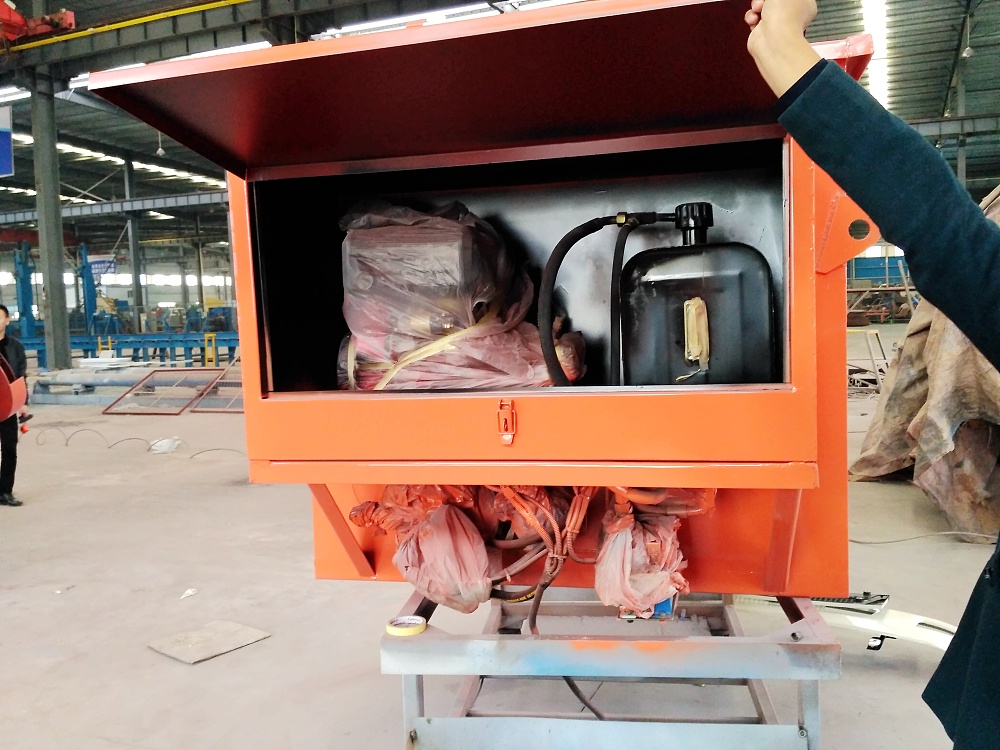 電啟動發動機工作,通過液壓泵帶動馬達旋轉,把料斗中的融雪劑輸送到撒料盤,由馬達帶動高速旋轉的撒料盤把融雪劑均勻撒出。撒布機的物料分配拋撒機構由,固定桶、調節桶、溜槽和甩盤。融雪劑靠自重落入固定桶內,經調節桶、溜槽進入甩盤,靠甩盤高速旋轉產生的離心力拋撒出去。根據承載汽車底盤高低不同,調節固定桶和調節桶的相對位置,以達到調節甩盤高低,滿足不同車型使用;具有的翻轉功能,可在設備不用時將甩盤機構翻**上方,方便運輸、存放。